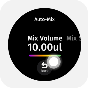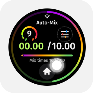 Tap the upper half of the main screen to enter the parameter menu.By swiping or tapping the screen, you can adjust in the parameter menu: mixing volume, number of mixes, and mixing speed.